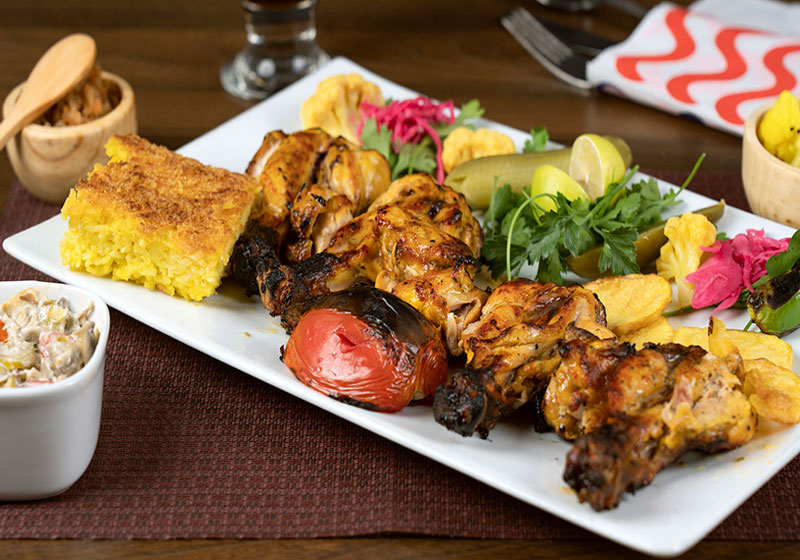 One Skewer Spiral Chicken Kebab, One Skewer Kebab-E-Koobideh, Garnish